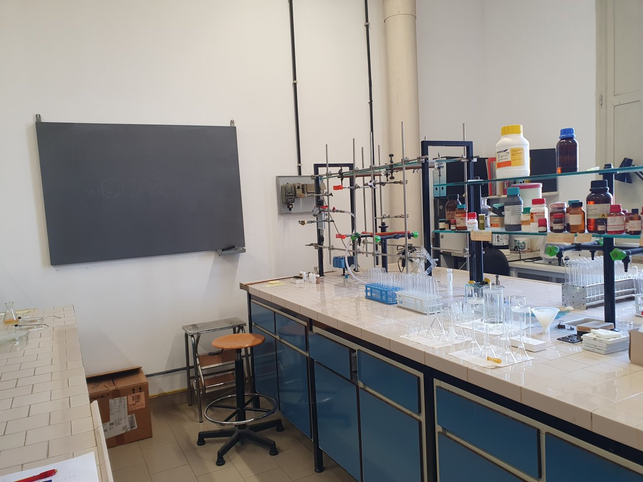 Laboratorio di Chimica Farmaceutica n°13 Il Laboratorio di Chimica Farmaceutica n. 13 del Dipartimento di Medicina, Chirurgia e Farmacia è guidato dalla Dott.ssa Paola Corona e si trova al 2° piano di via Muroni 23/a. Nato per supportare la ricerca accademica e la formazione di giovani ricercatori, il laboratorio offre un ambiente dinamico in cui competenze di sintesi organica e valutazione biologica convergono per lo sviluppo di nuovi farmaci. La dotazione strumentale comprende piastre e mantelli riscaldanti, rotavapor, stufa, un apparecchio per la determinazione del punto di fusione e l’intera vetreria necessaria per le fasi di sintesi e purificazione. Queste attrezzature consentono di affrontare ogni step della chimica preparativa, dalla progettazione di molecole alla loro caratterizzazione preliminare, garantendo elevati standard di sicurezza e riproducibilità. L’attività scientifica si articola in quattro linee di ricerca coordinate scientificamente dal Prof. Gabriele Murineddu:Nuovi scaffold ibridi ad attività antitumorale – ideazione di analoghi meno tossici e con migliori proprietà farmacologiche.Small molecules inibitori della tubulina – sviluppo di derivati antiproliferativi mirati alla proteina bersaglio.Progettazione di nuovi agenti antivirali – sintesi di indenopirroli e studio del loro meccanismo d’azione.Sistemi eterociclici a doppia attività antitumorale e antivirale – modulazione della porzione farmacoforica per ottimizzare il profilo terapeutico.Grazie a questo approccio integrato, il laboratorio contribuisce in modo significativo all’individuazione di candidati farmaceutici di nuova generazione, promuovendo collaborazioni interdisciplinari e offrendo opportunità formative a studenti e dottorandi interessati alla medicinal chemistry. Photogallery Ti può interessare Linee di ricerca di CHEM-07/A: Chimica Farmaceutica Pagine dei Docenti Dott.ssa Paola Corona Prof. Gabriele Murineddu Contatti Paola Corona 079228764 pcorona@uniss.it Gabriele Murineddu 079 228740 muri@uniss.it