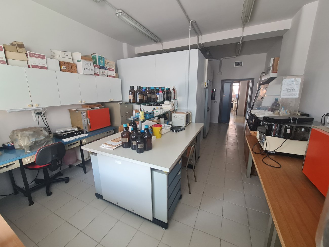 • Camera per colture cellulari con microscopi ottici e a fluorescenza, supportata da camera fredda per reagenti critici.